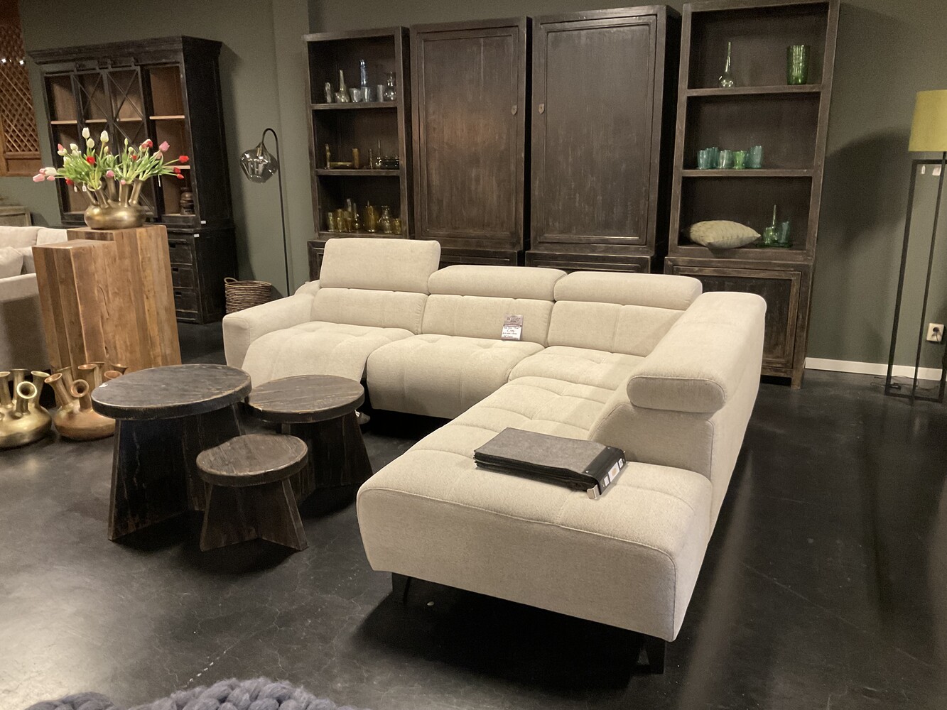 Lounge Bank Jules 3 zits met longchair in Levis 12 Taupe