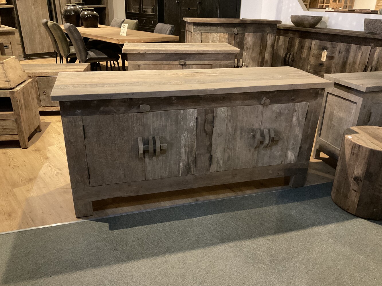Unieke handgemaakte dressoirs, kasten, kleinmeubelen tafels en nog veel meer gemaakt van oud teakhout. Ieder item staat sfeervol gepresenteerd in onze showrooms in Kessenich. Let op de getoonde foto is een dressoir van 200x100x50