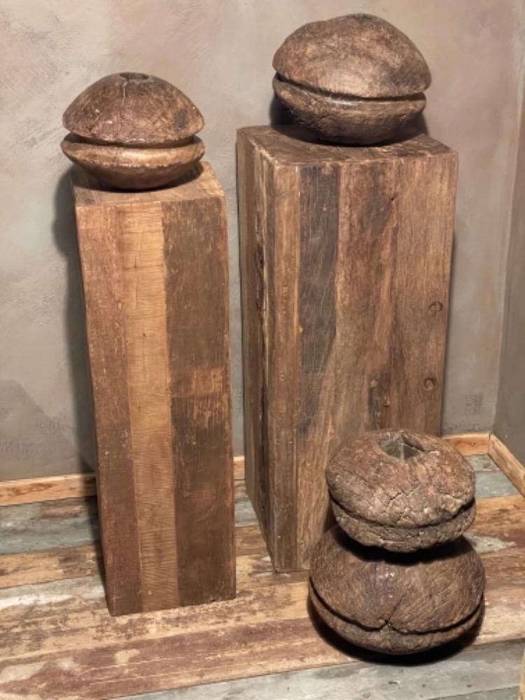 Deze handgemaakte pilaren in 2 maten zijn gemaakt van oud hout.