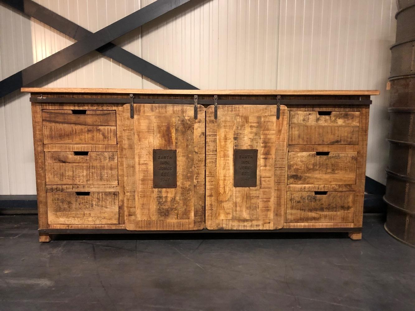 Uniek en handgemaakt is deze stoere dressoir gemaakt van robuust mangohout met stoere industriële accenten in old look. Deze collectie met al zijn karakteristieke details is exclusief te zien in onze showrooms in Kessenich. Deze dressoir behoort een enorme collectie van industriële meubelen welke meestal direct uit voorraad leverbaar zijn. Momenteel in 3 maten op voorraad en geWOON aanwezig in onze showroom op nr 389.