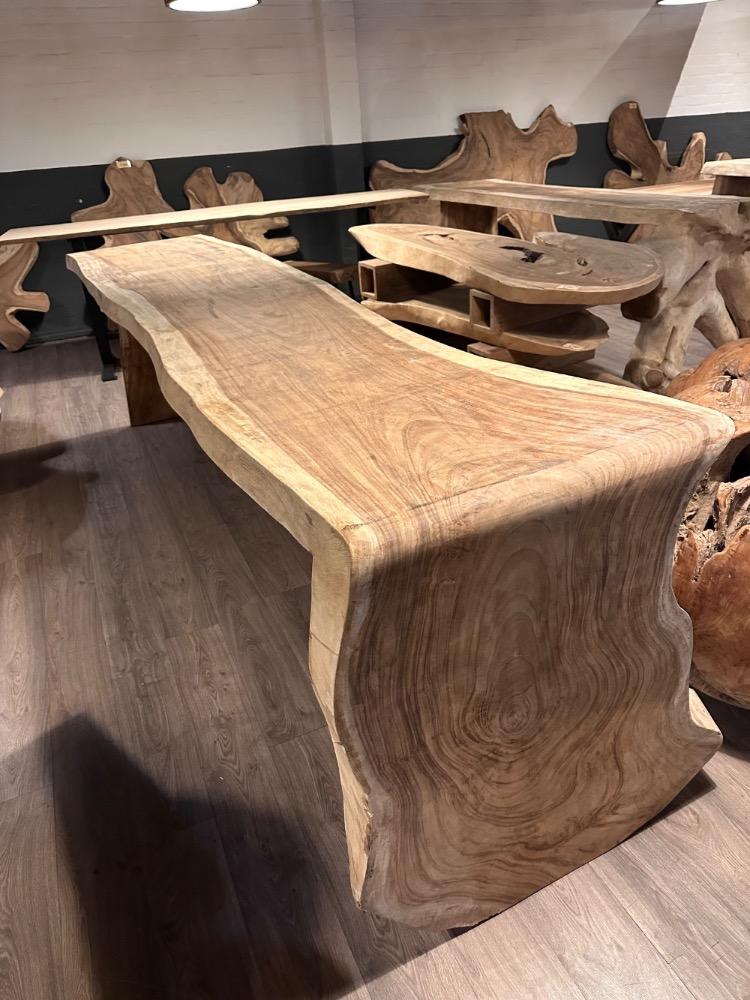 Getoonde boomstambladen zijn momenteel direct leverbaar en worden in eigen werkplaats samengesteld met een onderstel naar uw keuze. Maak uw woning of bedrijfspand nog sfeervoller met een boomstamtafel van De Graef Colonial Warehouse. Check onze huidige voorraad van ruim 30 boomstambladen uit 1 stuk geWOON in Kessenich. Getoonde bladen zijn eenmalig en dus direkt leverbaar. Twijfel dus niet en kom eens langs bij De Graef Colonial Warehouse en kies 1 van de vele boomstambladen uit eigen voorraad. Ontdek ons assortiment onze werkwijze en creativiteit.