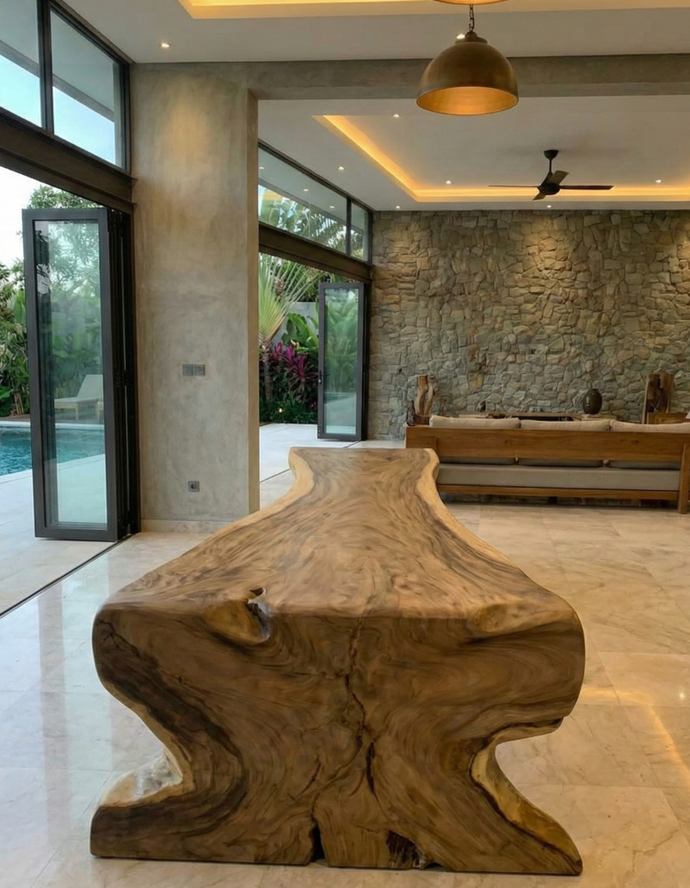 Getoonde boomstambladen zijn momenteel direct leverbaar en worden in eigen werkplaats samengesteld met een onderstel naar uw keuze. Maak uw woning of bedrijfspand nog sfeervoller met een boomstamtafel van De Graef Colonial Warehouse. Check onze huidige voorraad van ruim 30 boomstambladen uit 1 stuk geWOON in Kessenich. Getoonde bladen zijn eenmalig en dus direkt leverbaar. Twijfel dus niet en kom eens langs bij De Graef Colonial Warehouse en kies 1 van de vele boomstambladen uit eigen voorraad. Ontdek ons assortiment onze werkwijze en creativiteit.