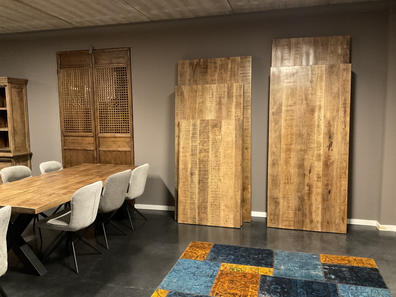 Onze mangohouten zijn meestal uit eigen voorraad leverbaar. Van dinsdag t/m zaterdag kun je hier terecht voor de mooiste manghohouten eetkamertafels en bartafels.