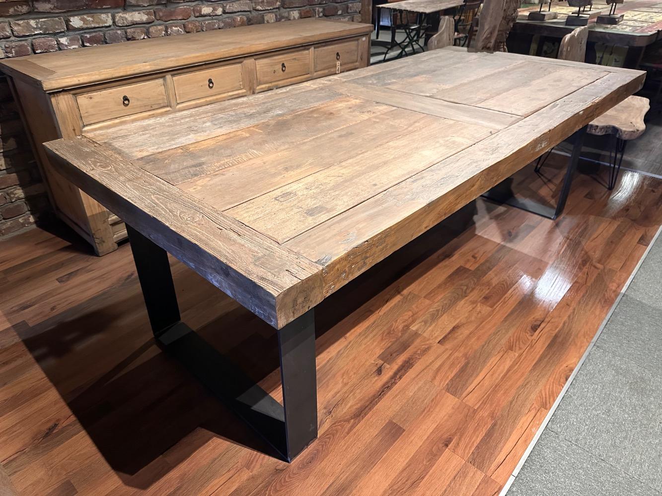 Een stoere eettafel gemaakt van hergebruikt teakhout. Deze tafel is direkt leverbaar in verschillende maten. Kom geWOON eens langs in Kessenich en kies je favoriete blad en onderstel zelf uit. Ontdek ook onze enorme collectie industriële eettafels op maat, oud eiken tafels uit eigen werkplaats en nog veel meer voor een stoer landelijk, of industrieel interieur
