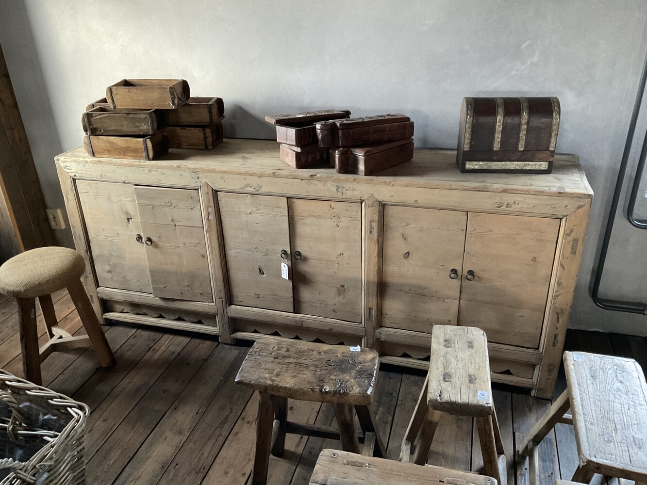 Uniek is deze dressoir in naturel finish. Oud en origineel en One of a kind, dus weg=weg. We hebben momenteel een enorm assortiment unieke dressoirs in onze showrooms, Dressoirs, sidetables en kasten groot of klein met hun originele sobere eenvoud, of juist gerestyled tot een uniek exemplaar met een moderne hoogglans finish. Deze unieke dressoir is geWOON aanwezig in onze showroom
