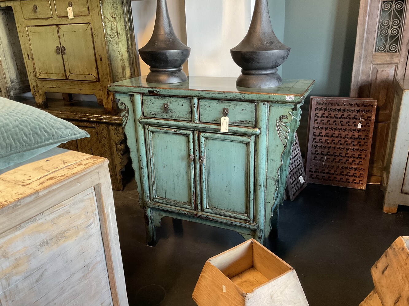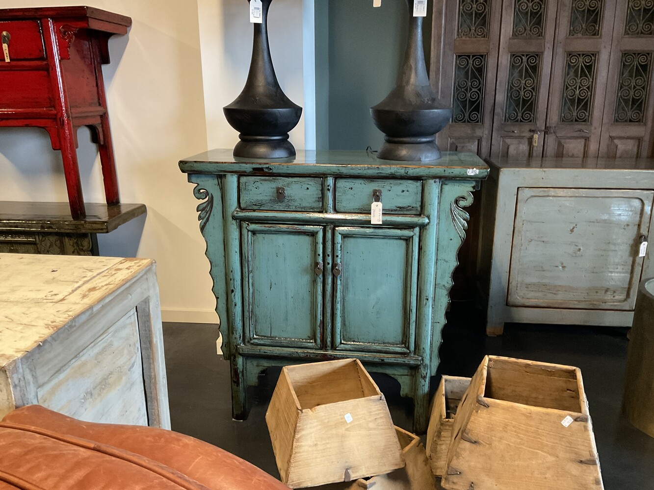 Dit unieke gelakte kastje is geWOON aanwezig in onze showroom.