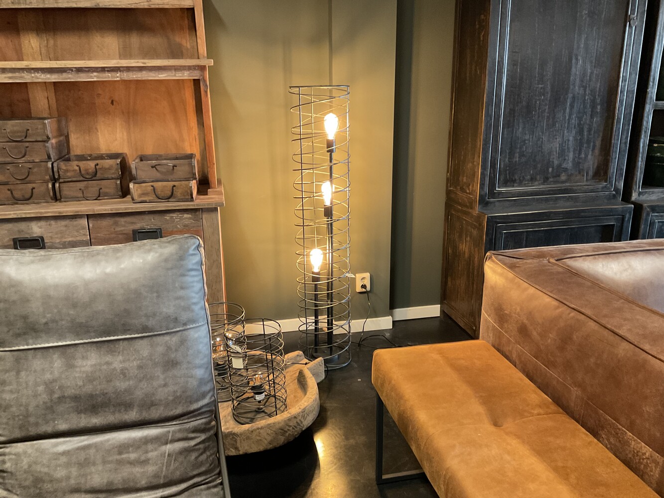 Deze stoere hanglamp is weer uit voorraad leverbaar. Koop je de hanglamp, vloerlamp en tafellamp dan ontvang je 10% extra korting. Ontdek deze hanglampen dus gewoon offline in onze showrooms in Kessenich. De hanglamp komt op €309 en de tafellamp op €99. Let op wij versturen geen lampen, we zien je dus graag in Kessenich.